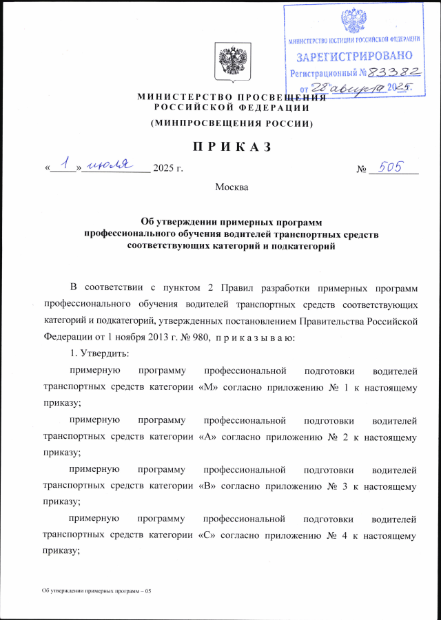 Примерная программа профессиональной подготовки водителей транспортных средств категории «В»